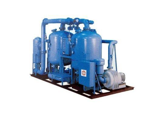 微热再生干燥机按“变温吸附”(TSA)原理进行吸附剂再生,再生条件比无热再生干燥机优越。加热能脱附吸附剂内表面的水蒸气,使吸附剂实现深层吸附,因此有热再生干燥机中吸附剂的动态吸附量远远比无热再生干燥机中的吸附剂动态吸附量大。